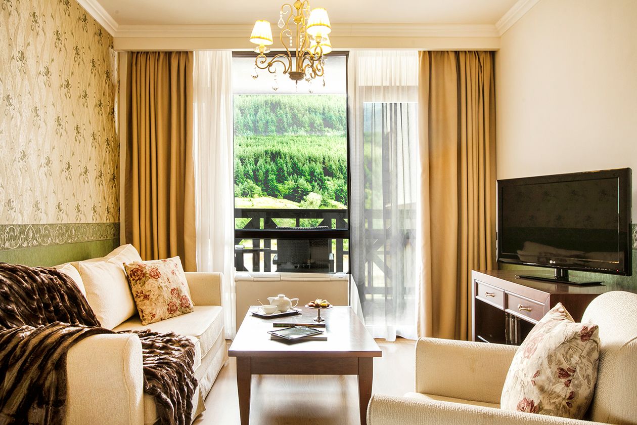 Modern suite accommodation, compliments your relaxing holidays in Bansko. Inspired by the calm stillness of nature and PREMIER attention to detail, Alpine Suite invites you to relax in comfort and enjoy serene views of the mountains. Savor your room’s warm color palette. Customize your stay in your bedroom with mood lighting and experience PREMIER holidays with your loved ones in your separate living room area.